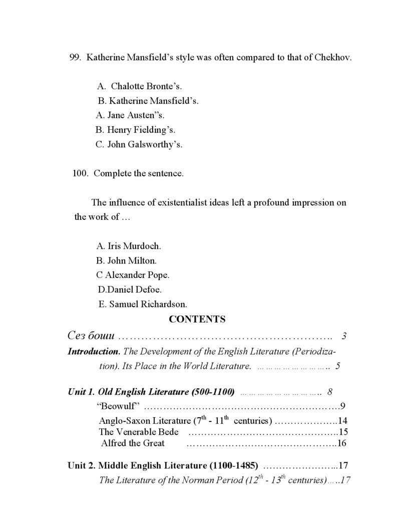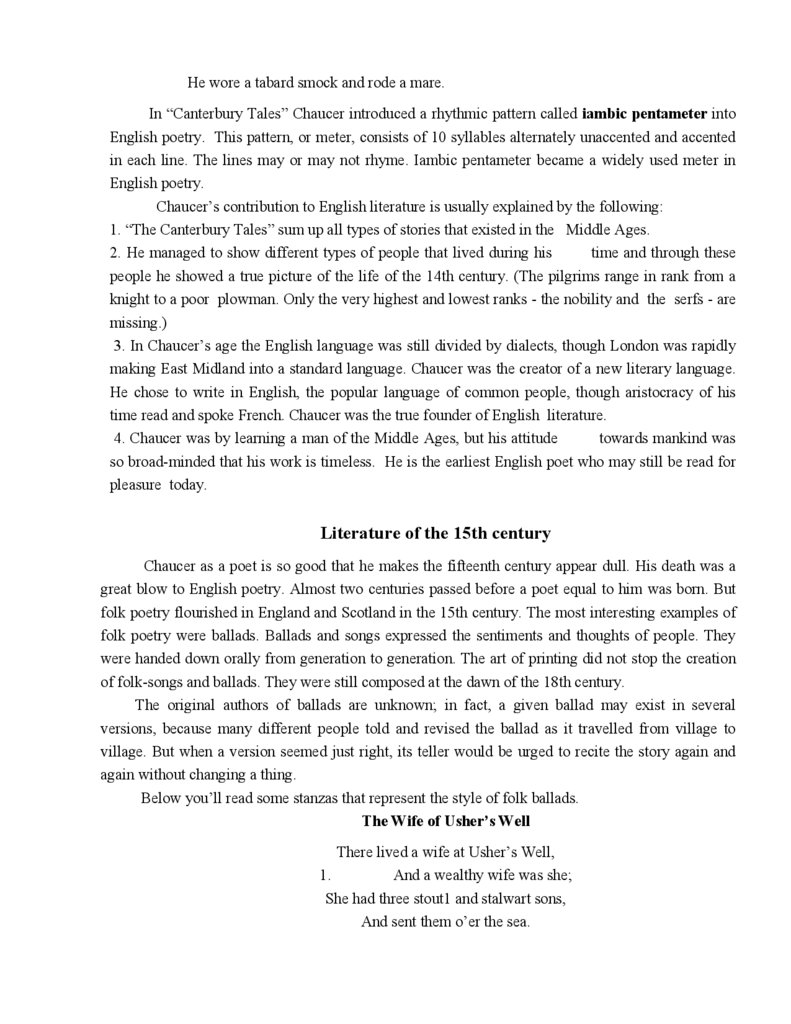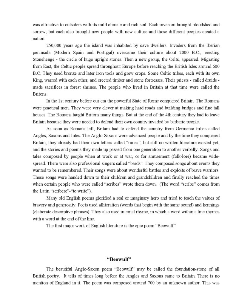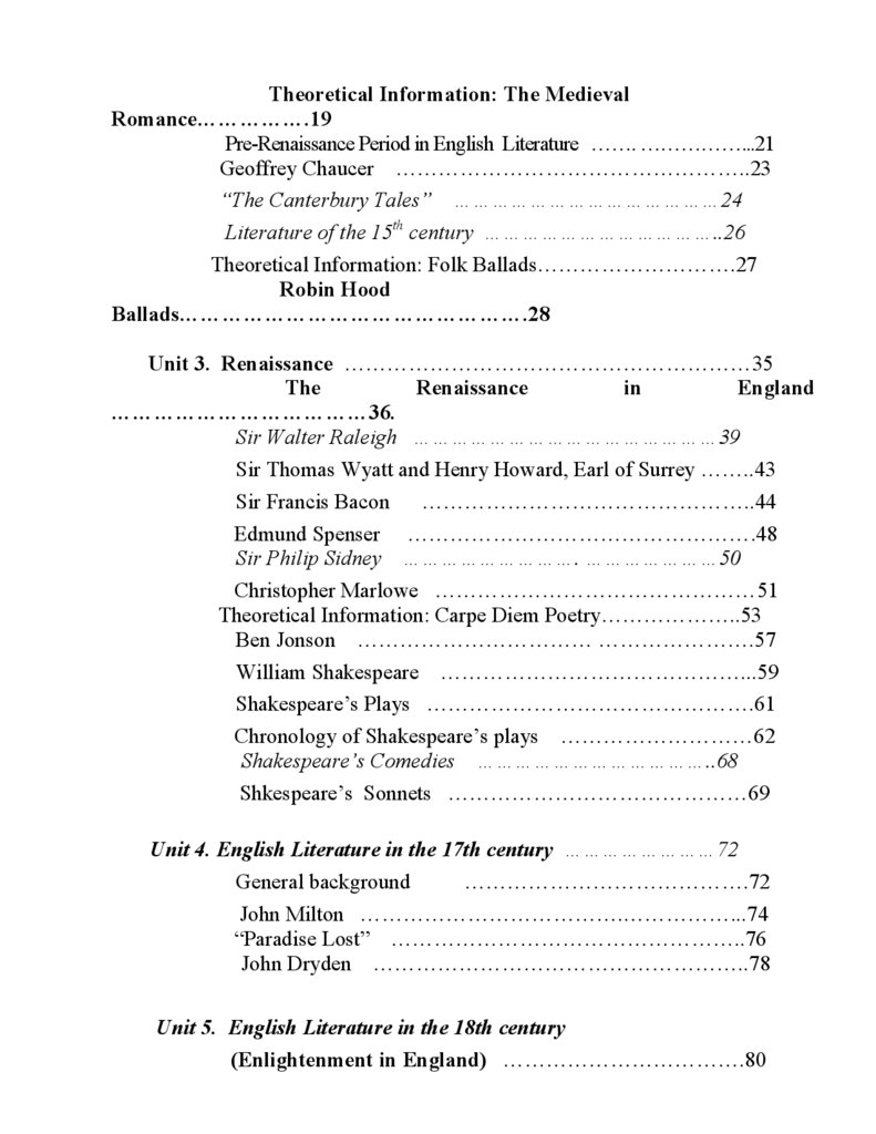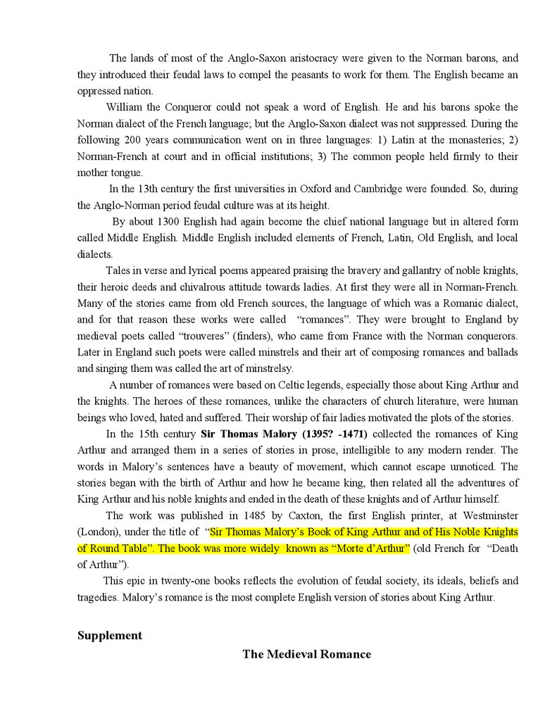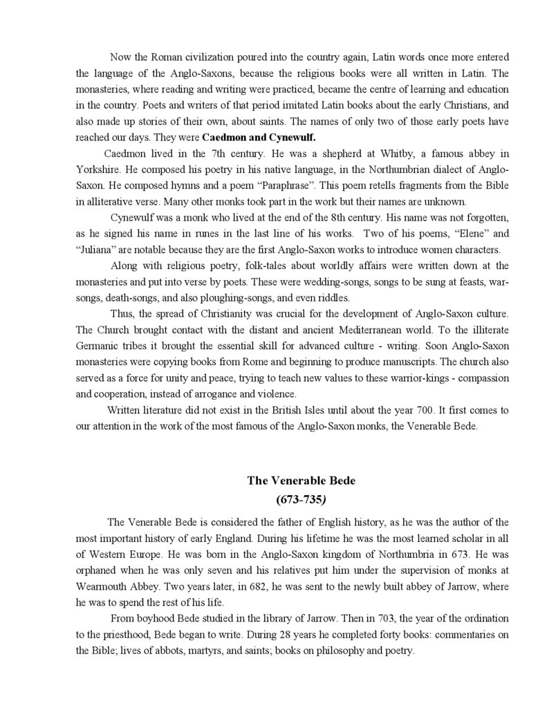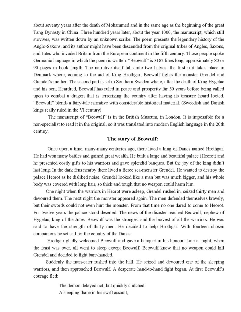 The Development of English Literature (Periodization).Its Place in the World Literature.