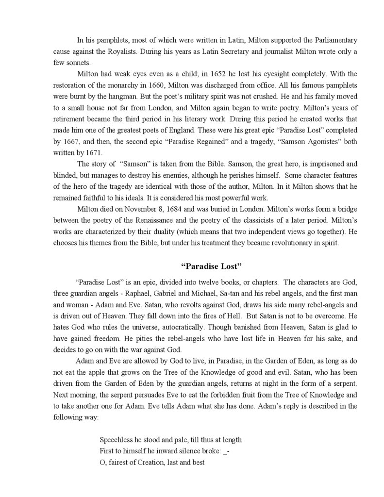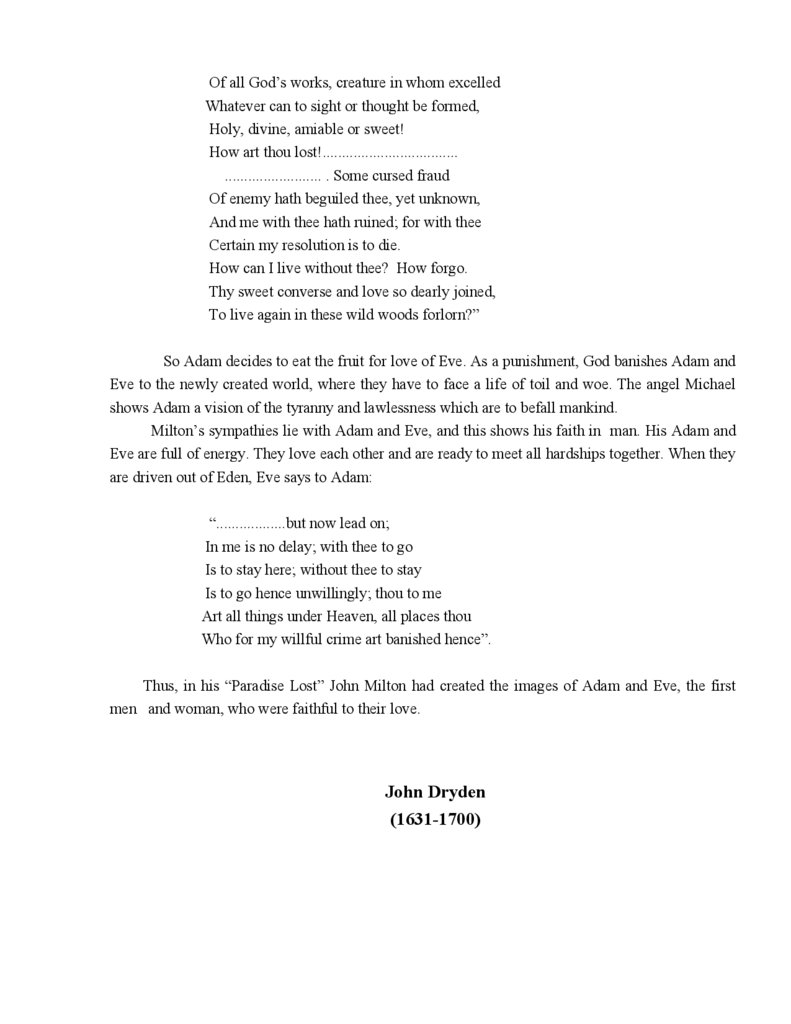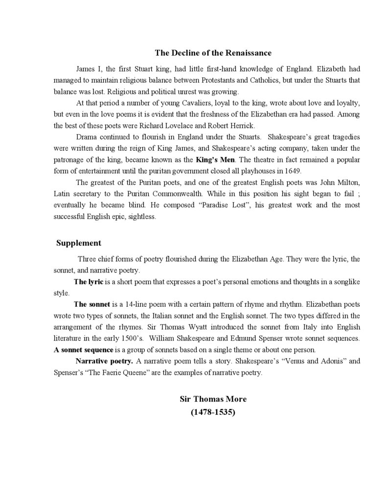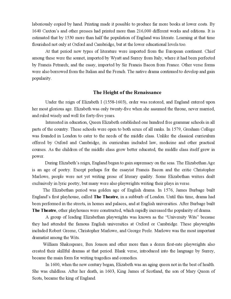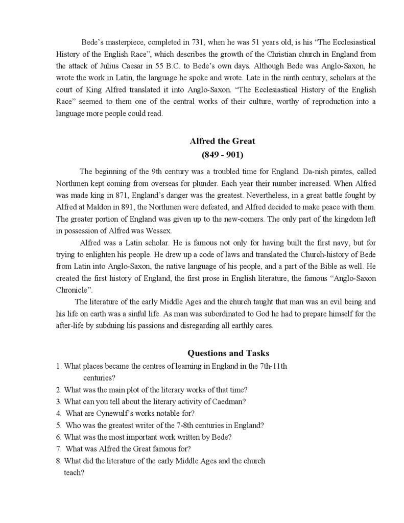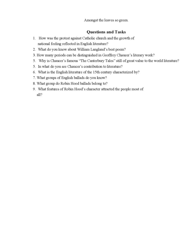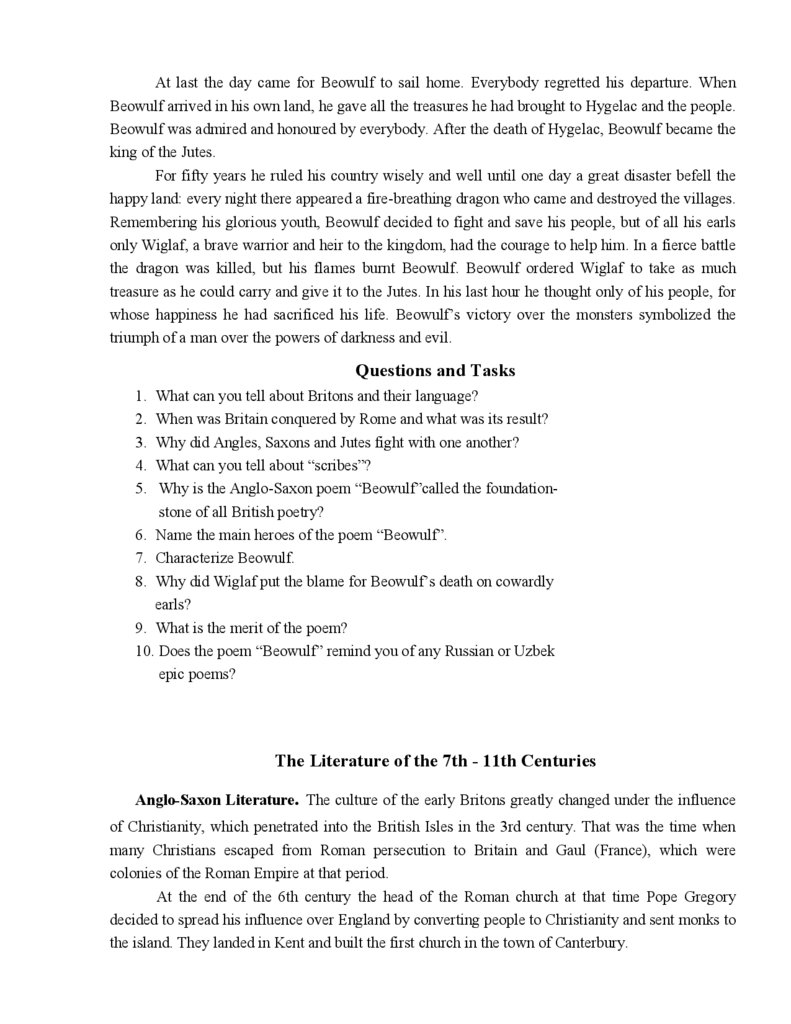 The Development of English Literature (Periodization).Its Place in the World Literature.