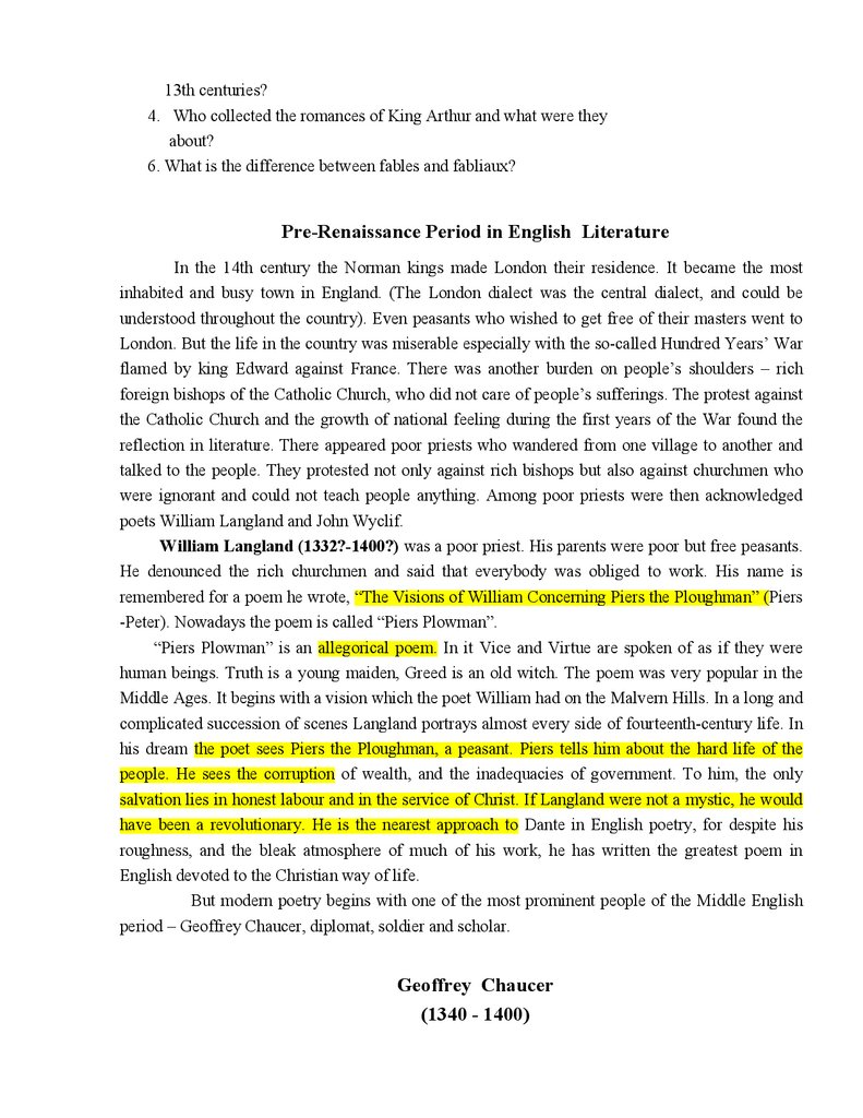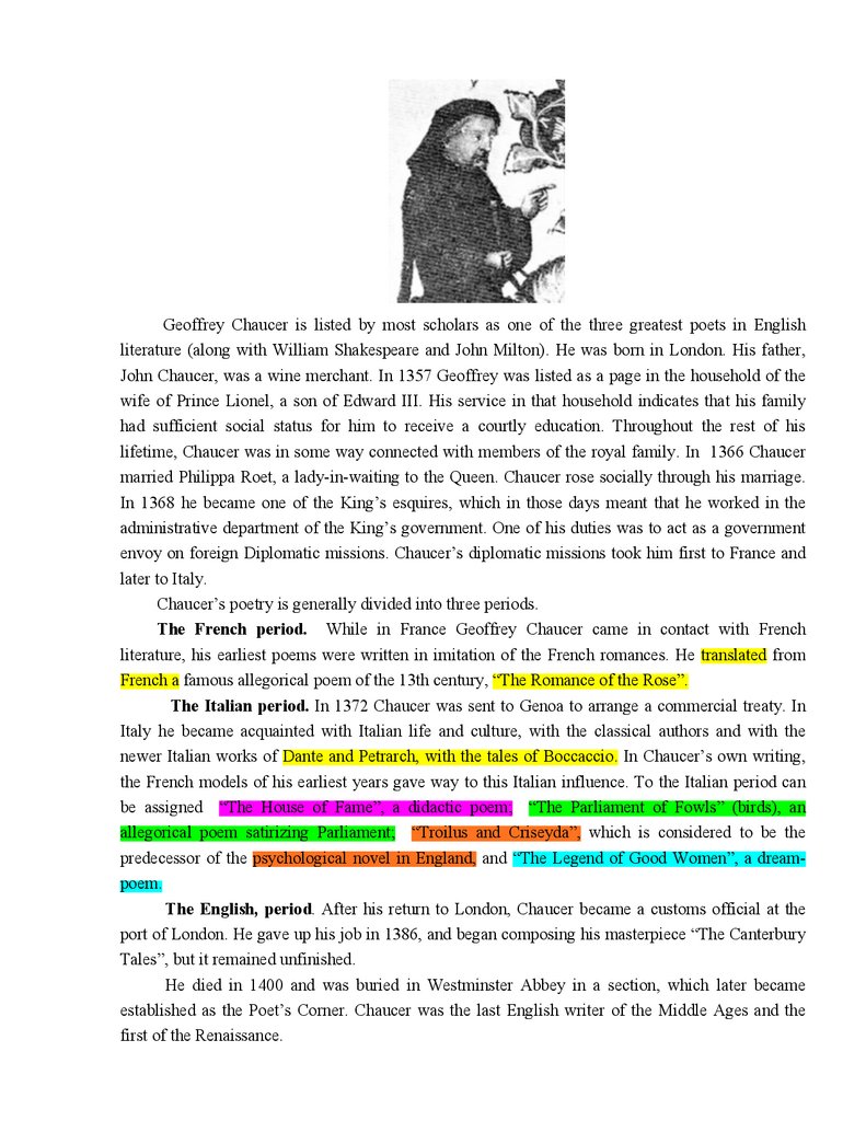 from the turn of the XIV century to the present rank among the world’s greatest literary figures.