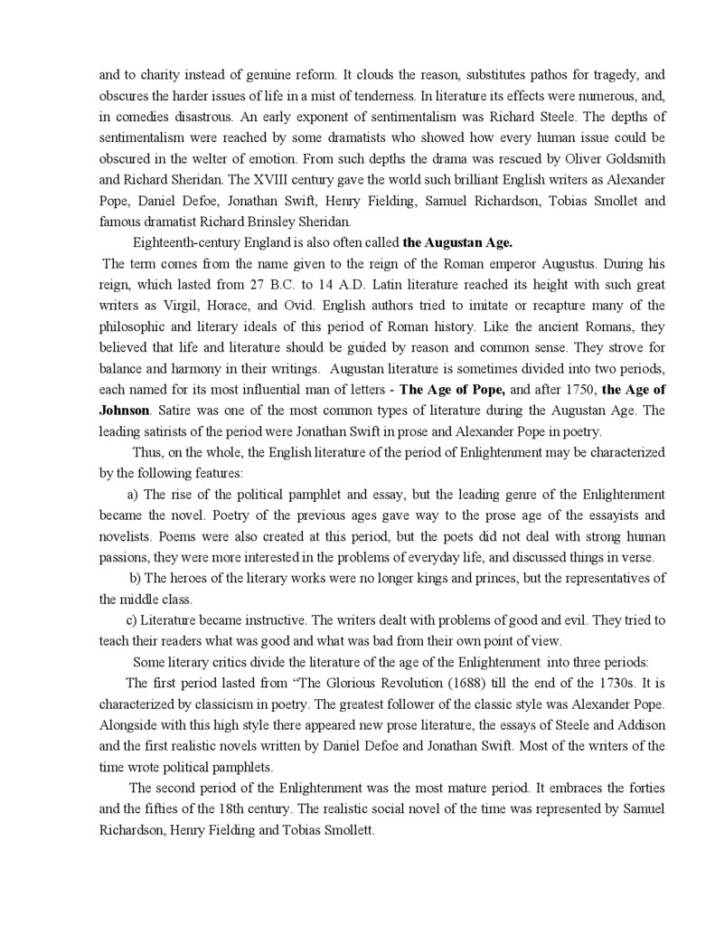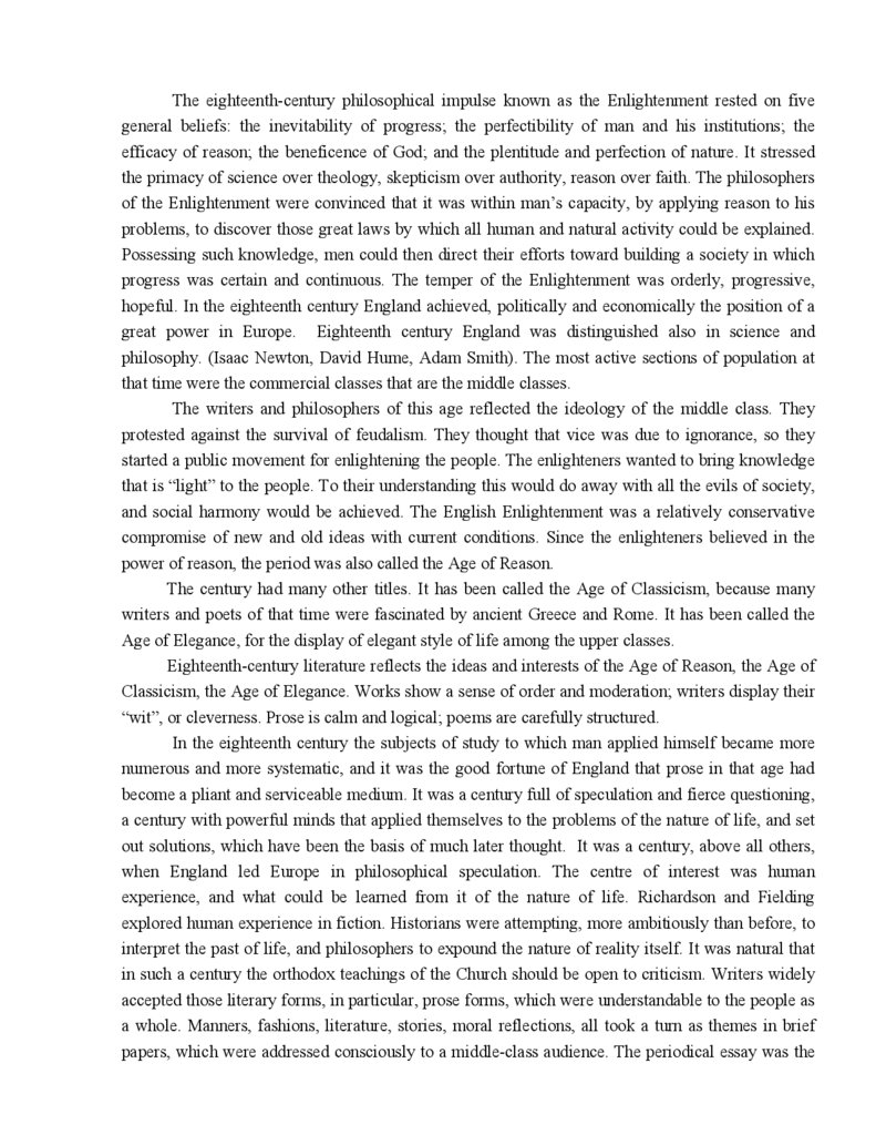 5. The Eighteenth Century. (The Age of Reason or Enlightenment).