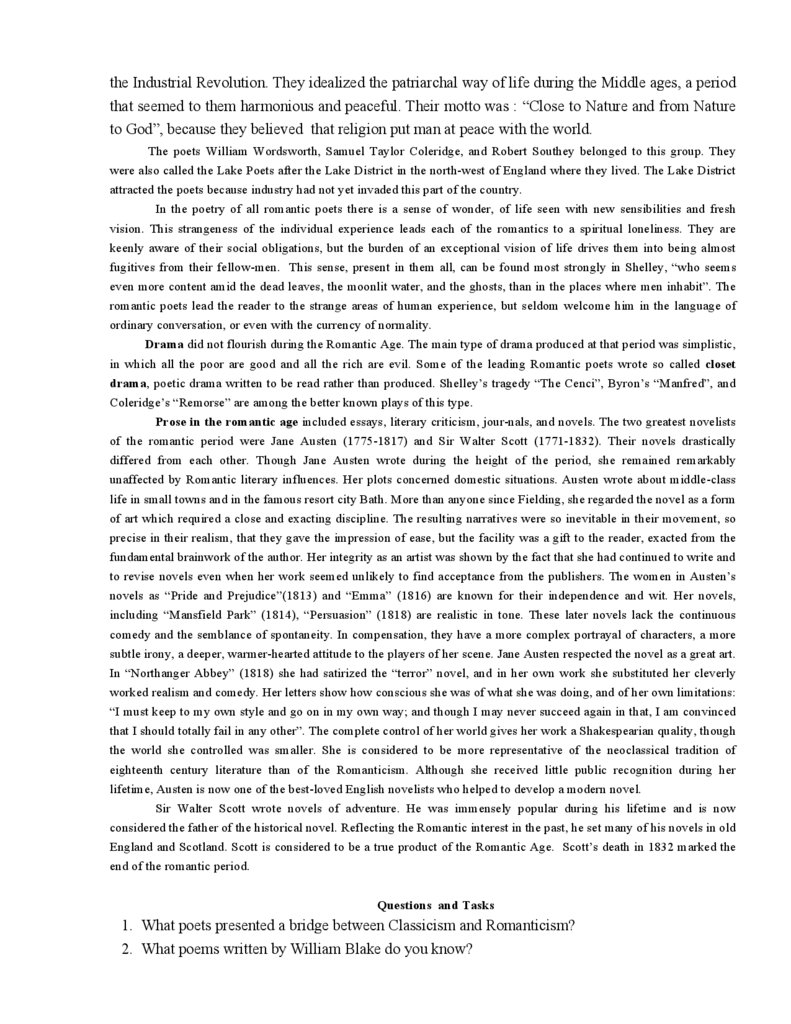 Unit 6. The Romantic Age in English Literature (1780-1830)