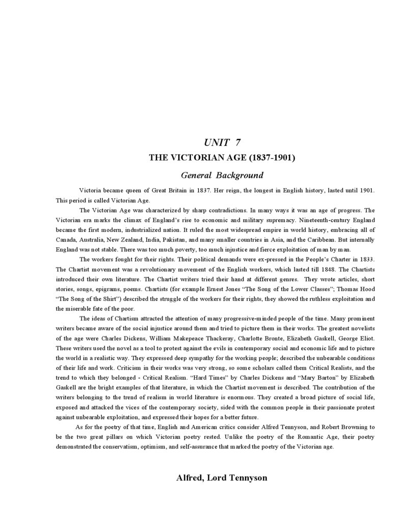 Unit 7. The Victorian Age (1837-1901) …………………………125