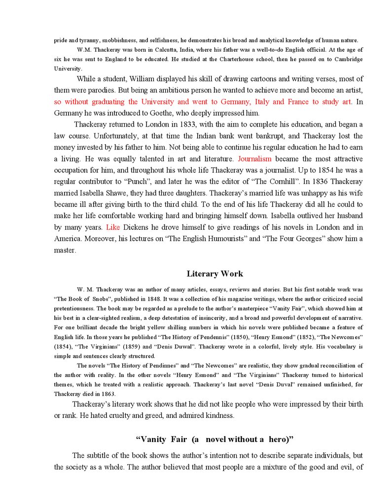 “Vanity Fair (A Novel Without a Hero)”…………………..139