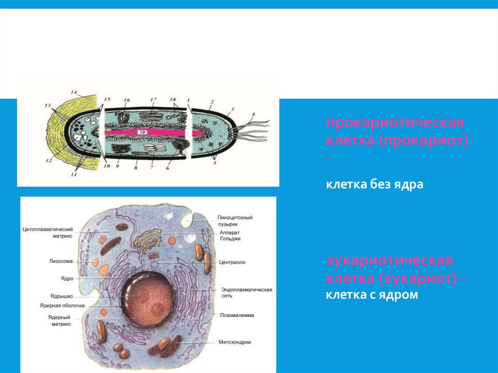 - прокариотические клетки (прокариоты)
