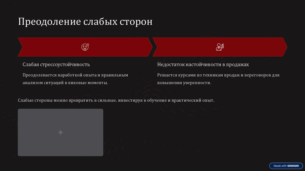 Слабые стороны можно превратить в сильные, инвестируя в обучение и практический опыт.