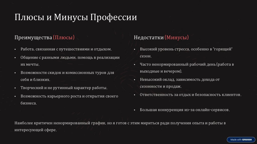 Плюсы и Минусы ПрофессииПреимущества (Плюсы)