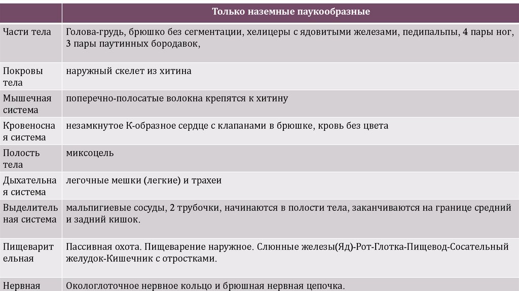 • Делятся на отряды: Пауки, Скорпионы, Клещи,