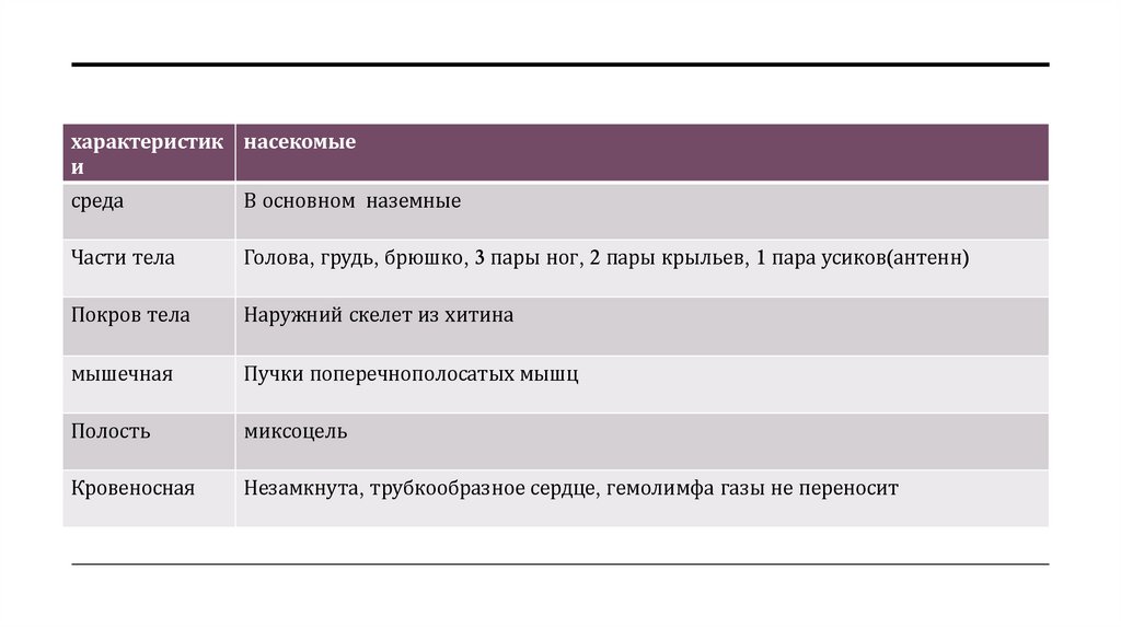 Голова, грудь, брюшко, 3 пары ног, 2 пары крыльев, 1 пара усиков(антенн)