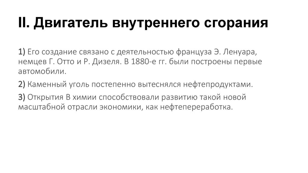 II. Двигатель внутреннего сгорания1) Его создание связано с деятельностью француза Э. Ленуара,
