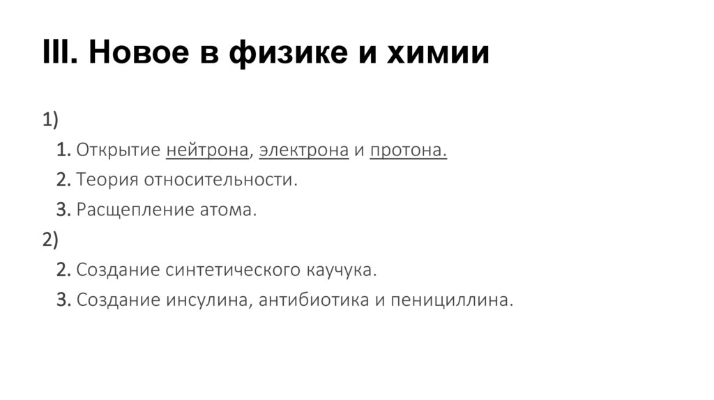 III. Новое в физике и химии1)