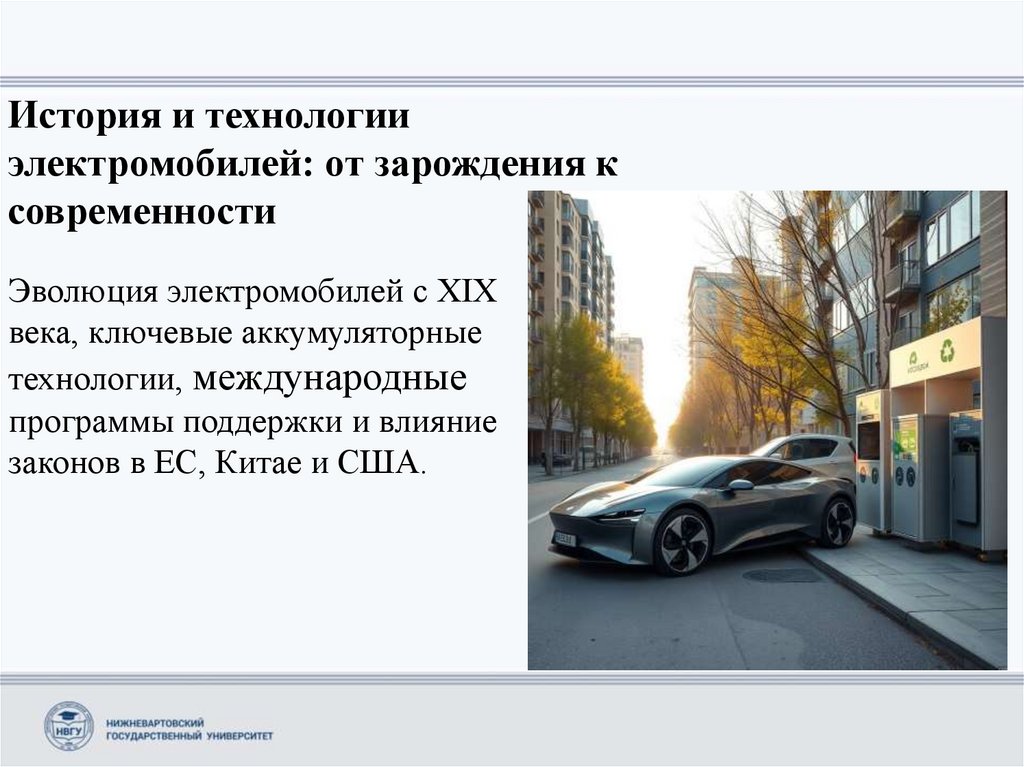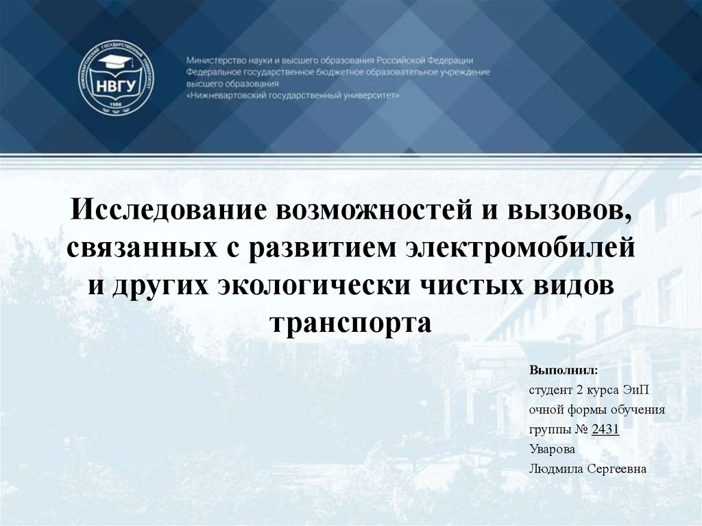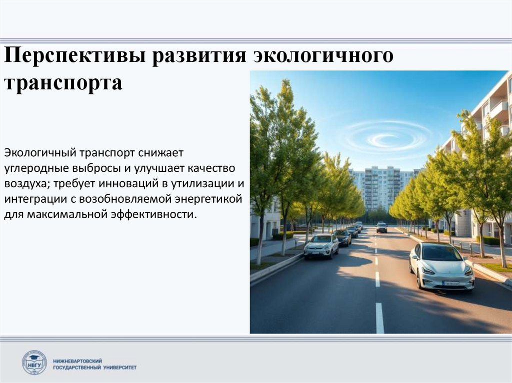 1. Исследование возможностей и вызовов, связанных с развитием электромобилей и других экологически чистых видов транспорта