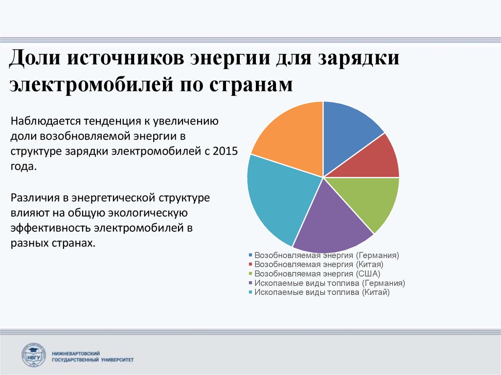 Доли источников энергии для зарядкиэлектромобилей по странам