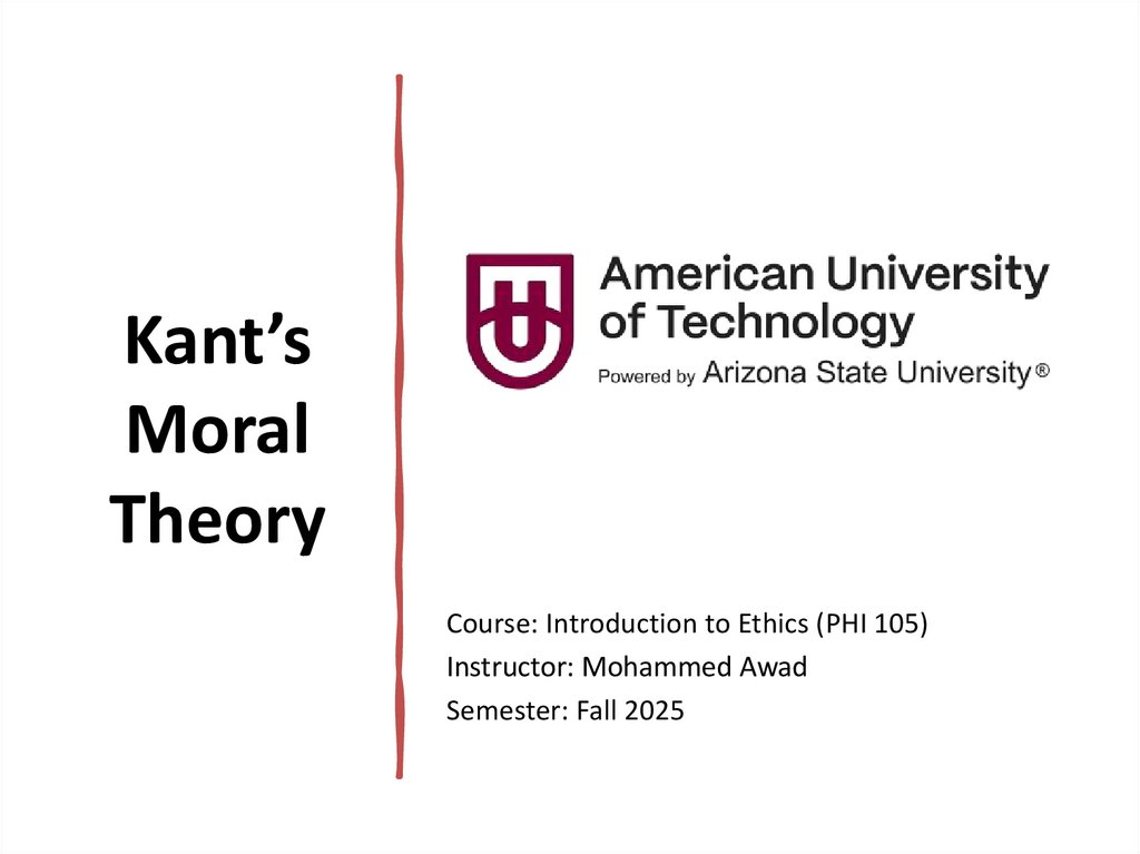 Course: Introduction to Ethics (PHI 105)Instructor: Mohammed Awad