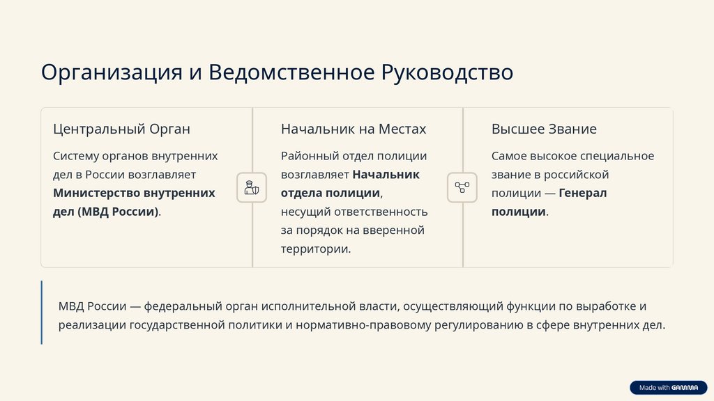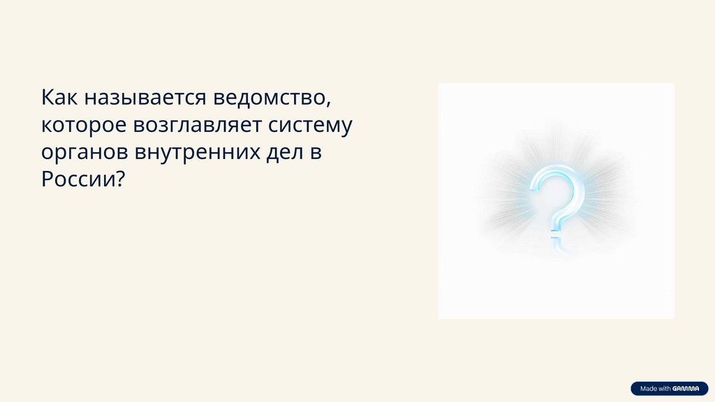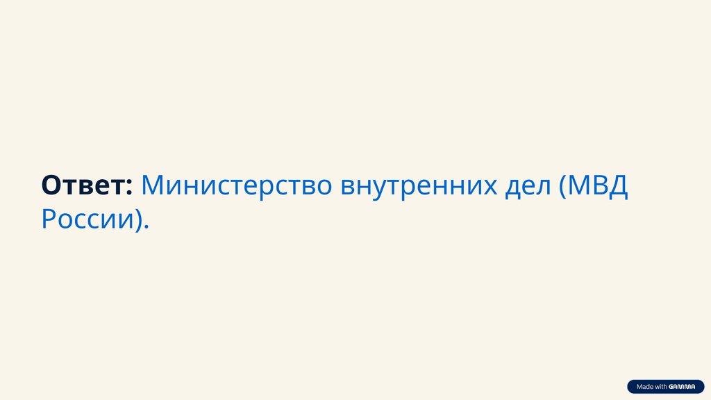 Ответ: Министерство внутренних дел (МВДРоссии).