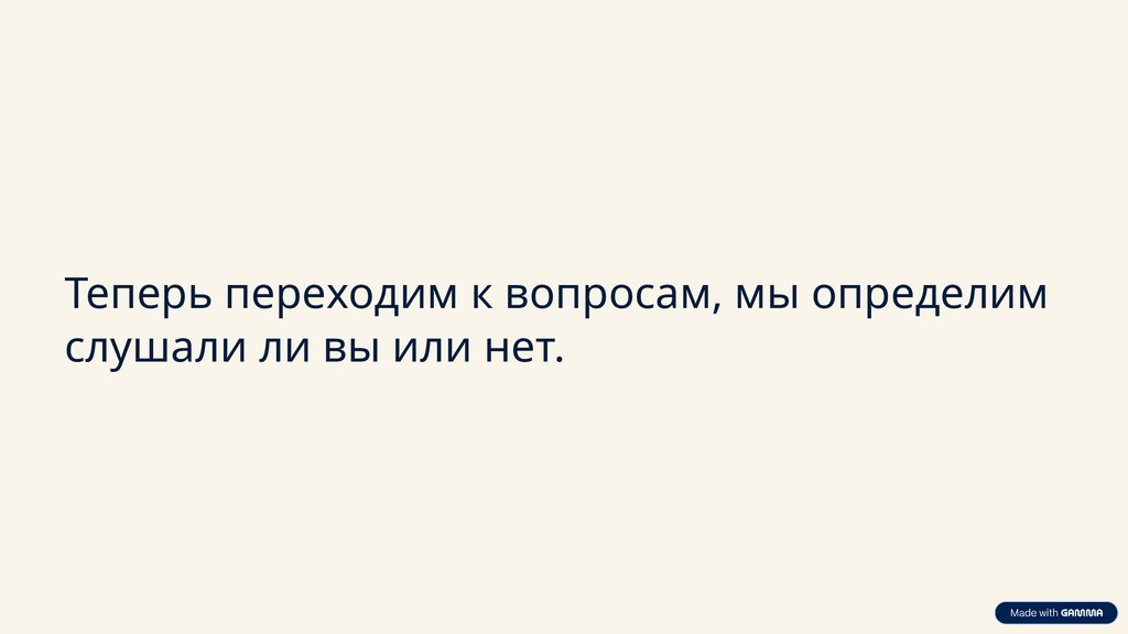 Теперь переходим к вопросам, мы определимслушали ли вы или нет.