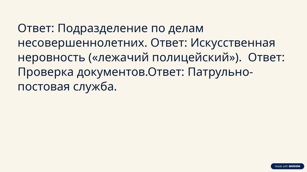 Ответ: Генерал полиции. Ответ: Начальникотдела полиции.Ответ: Служба защиты