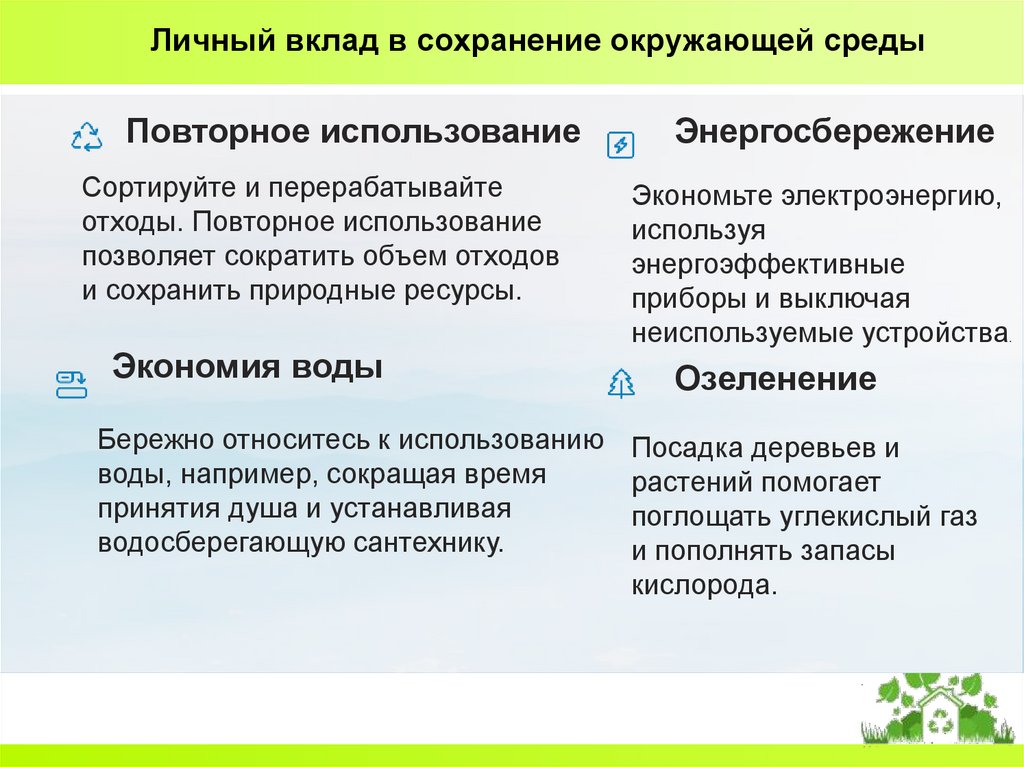 Личный вклад в сохранение окружающей средыПовторное использование