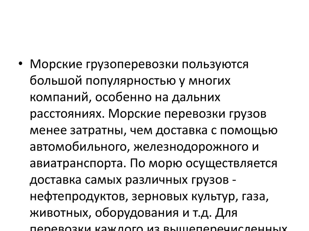 • Морские грузоперевозки пользуютсябольшой популярностью у многих