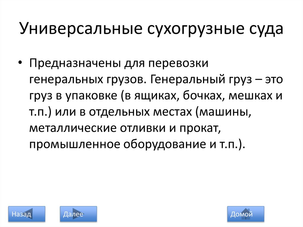 Универсальные сухогрузные суда• Предназначены для перевозки
