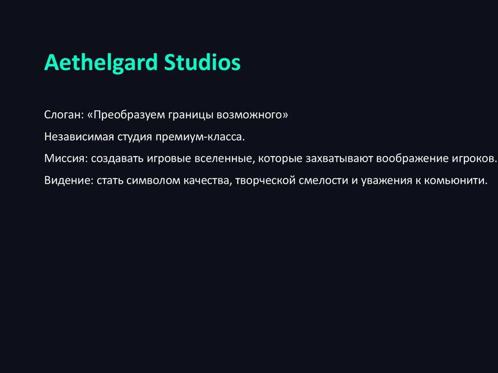Aethelgard StudiosСлоган: «Преобразуем границы возможного»