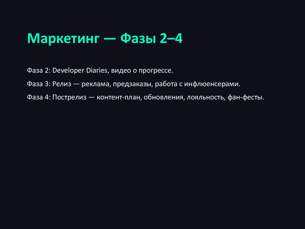 Фаза 3: Релиз — реклама, предзаказы, работа с инфлюенсерами.