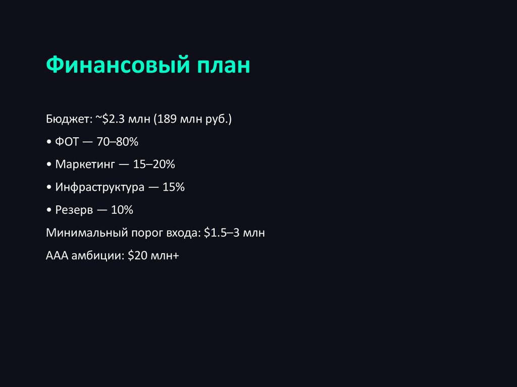 Финансовый планБюджет: ~$2.3 млн (189 млн руб.)