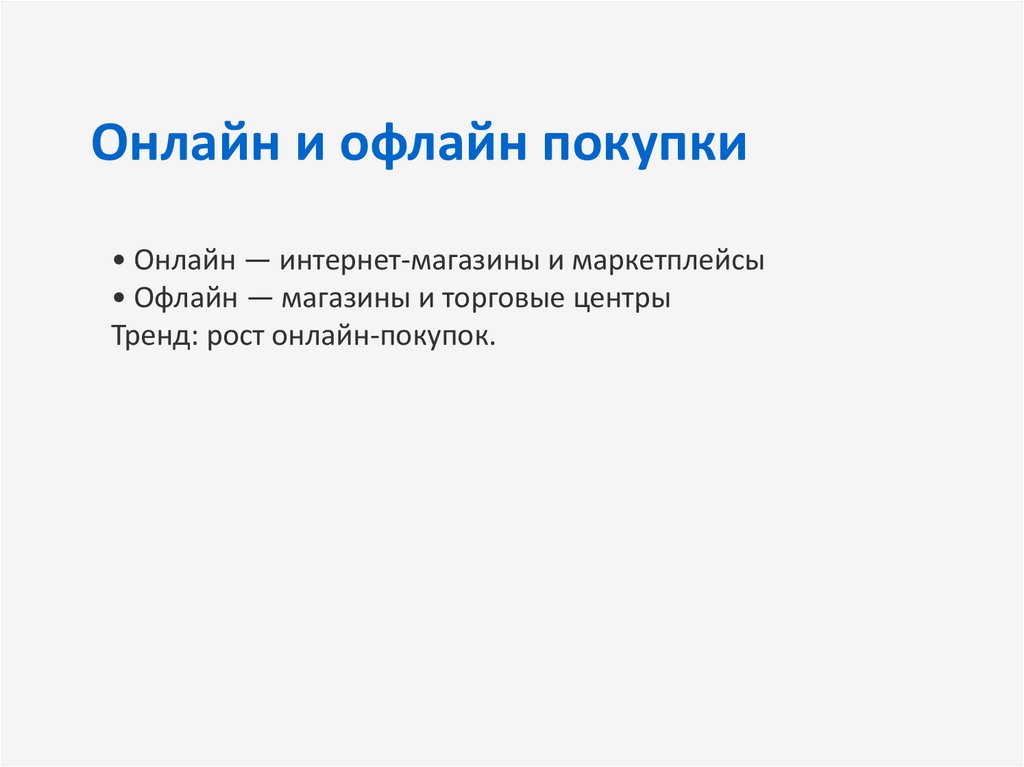 Онлайн и офлайн покупки• Онлайн — интернет-магазины и маркетплейсы