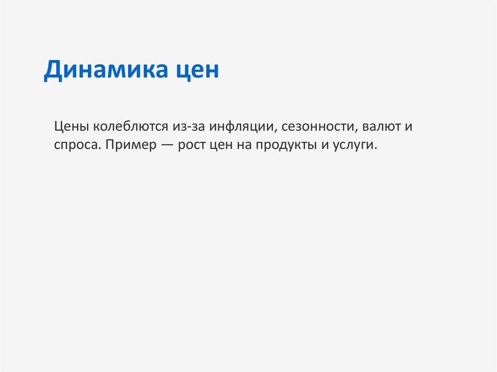 Динамика ценЦены колеблются из-за инфляции, сезонности, валют и