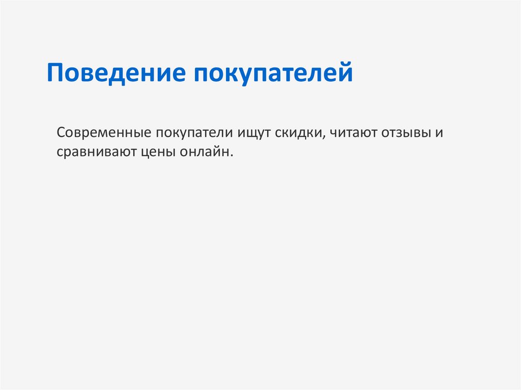 Поведение покупателейСовременные покупатели ищут скидки, читают отзывы и