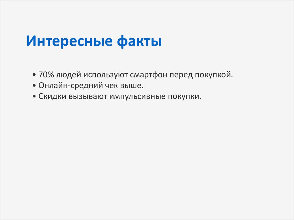 Интересные факты• 70% людей используют смартфон перед покупкой.