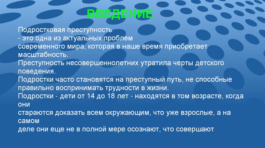ВВЕДЕНИЕПодростковая преступность
