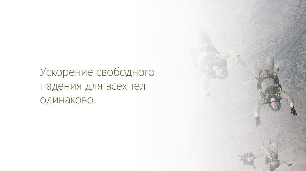 Ускорение свободного падения – этоускорение, которое приобретает тело во