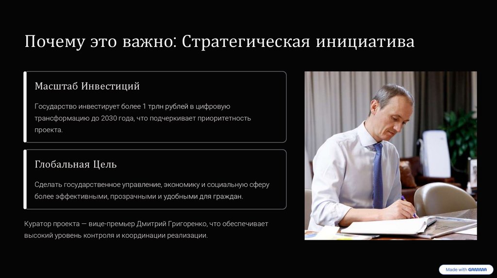 Куратор проекта — вице-премьер Дмитрий Григоренко, что обеспечивает