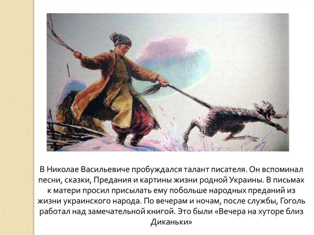В Николае Васильевиче пробуждался талант писателя. Он вспоминалпесни, сказки, Предания и картины жизни родной Украины. В письмах