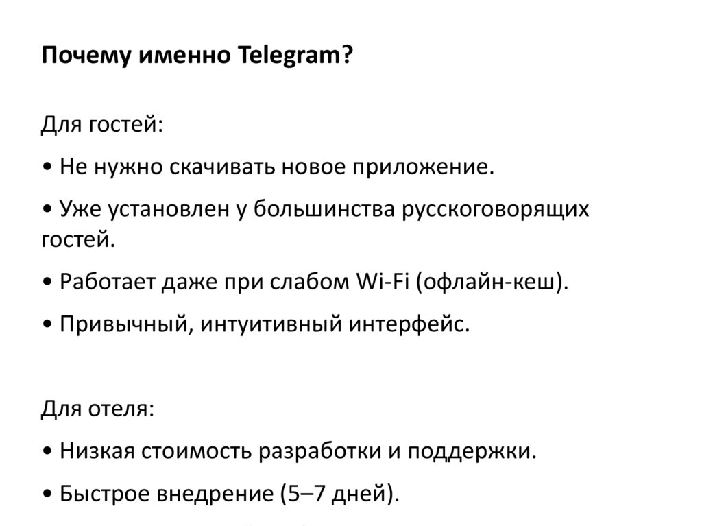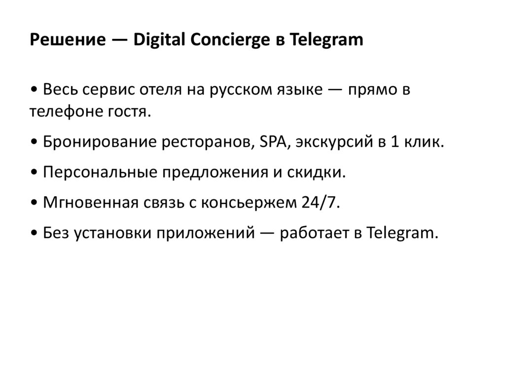 Решение — Digital Concierge в Telegram• Весь сервис отеля на русском языке — прямо в
