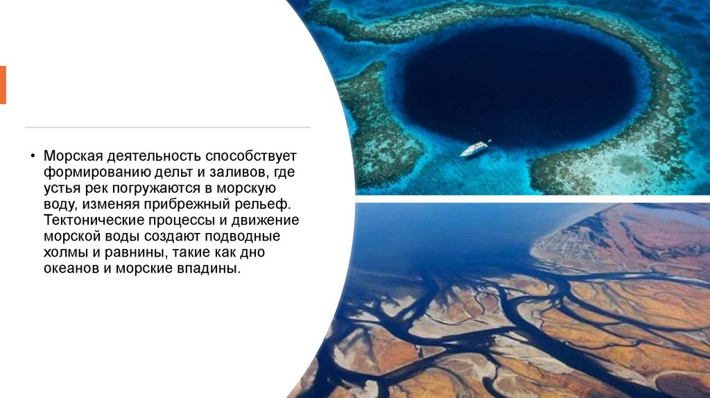 • Морская деятельность способствуетформированию дельт и заливов, где