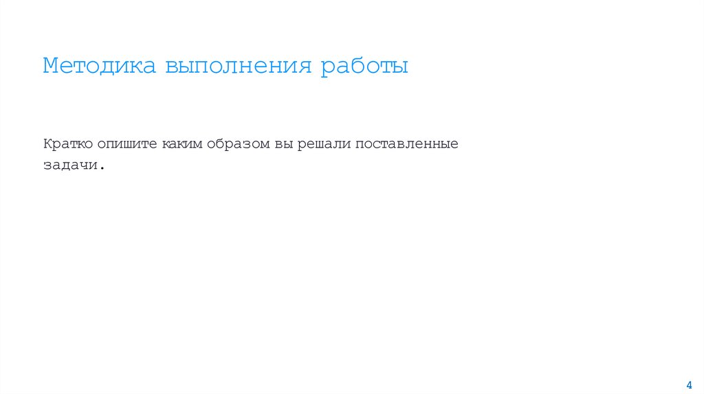 Методика выполнения работыКратко опишите каким образом вы решали поставленные