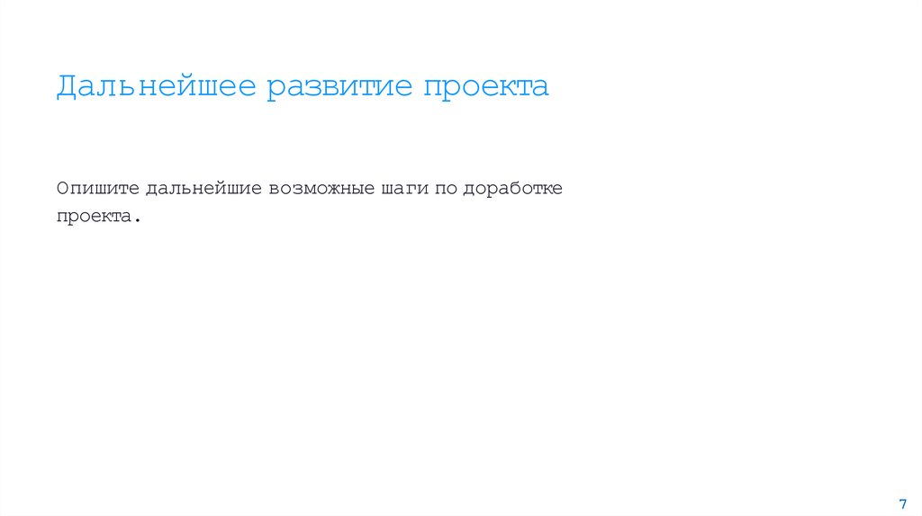Дальнейшее развитие проектаОпишите дальнейшие возможные шаги по доработке