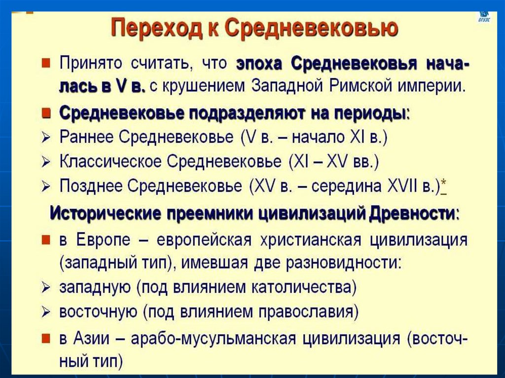 8. І ПЕРИОД — ЭПОХА РАННЕГО СРЕДНЕВЕКОВЬЯ (V—XI вв.)