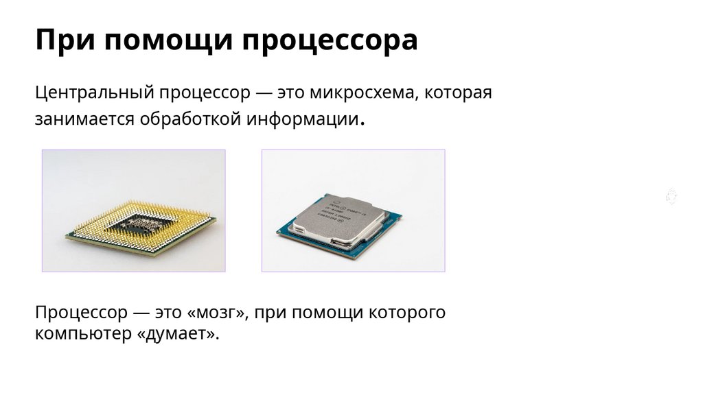 При помощи процессораЦентральный процессор — это микросхема, которая