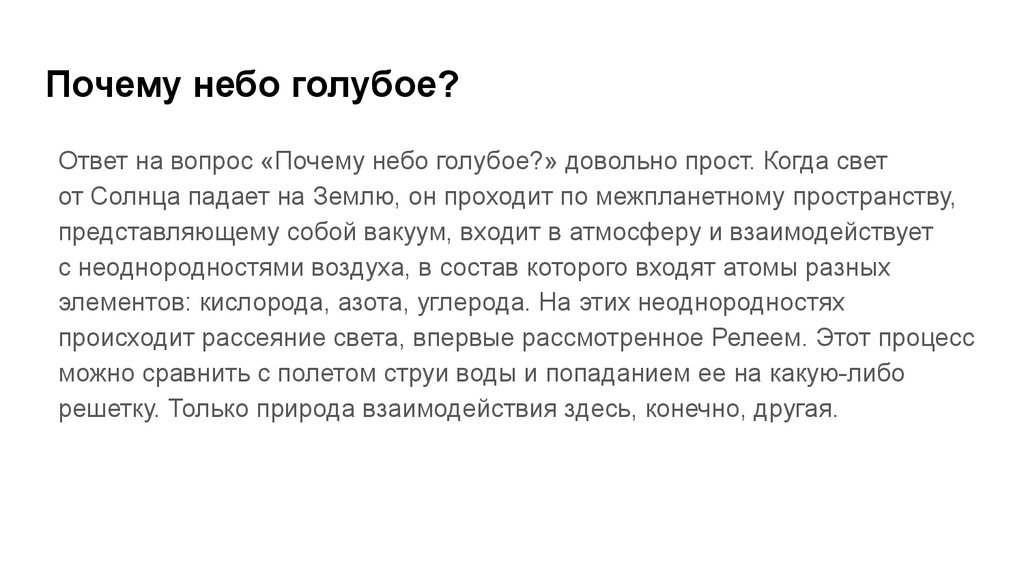 Почему небо голубое?Ответ на вопрос «Почему небо голубое?» довольно прост. Когда свет