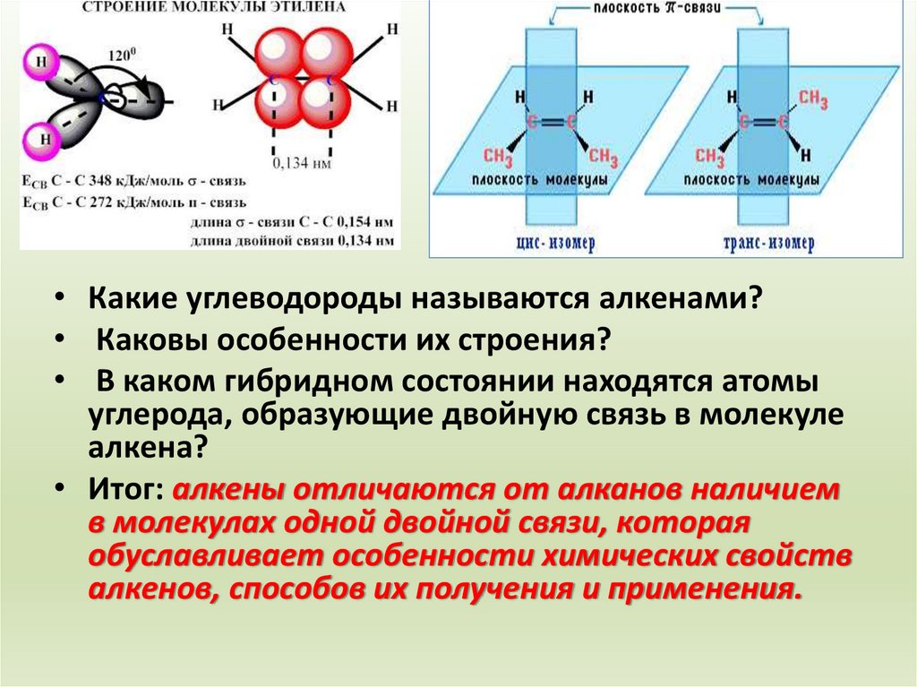 • Какие углеводороды называются алкенами?• Каковы особенности их строения?