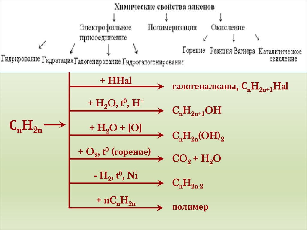 • – алкены обесцвечивают растворперманганата калия (реакция Вагнера)