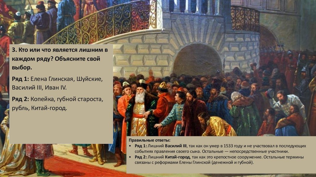• Ряд 1: Лишний Василий III, так как он умер в 1533 году и не участвовал в последующих