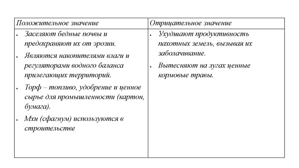 выбранных слов на места пропусков в тексте, а затем выпишите их в таблицу.Мхи