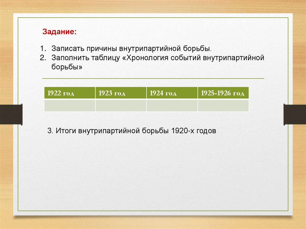 2. Заполнить таблицу «Хронология событий внутрипартийной