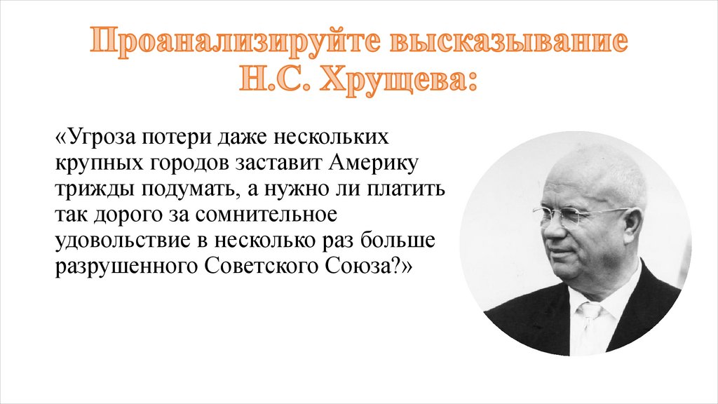 Слайд 9: Н.С. Хрущев рассматривал наличие ядерного