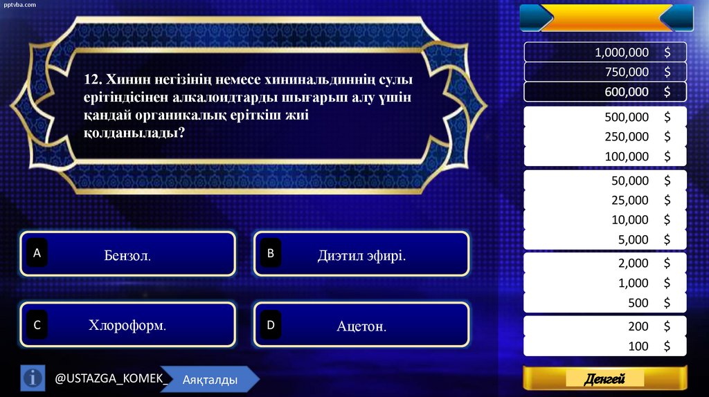 pptvba.com12. Хинин негізінің немесе хининальдиннің сулы