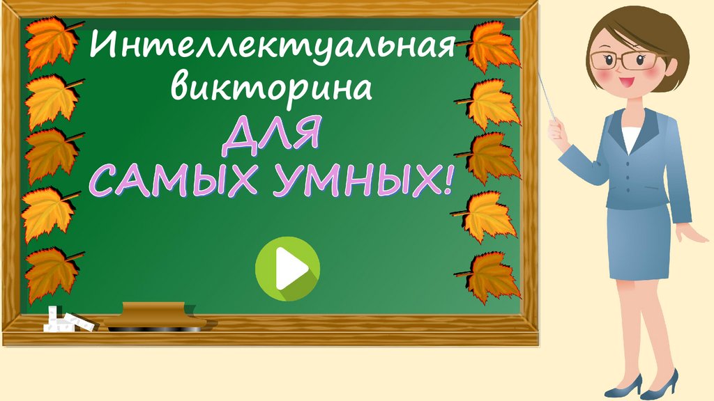 гиперссылками. Для начала работы с викториной запустите в режиме показа 2-й слайд с названием и нажмите на кнопку «зеленой стрелочки», вы перейдете к
