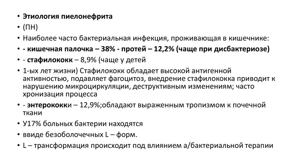 • - энтерококки – 12,9%;обладают выраженным тропизмом к почечной